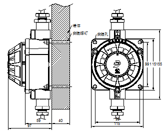 安裝時(shí)需根據(jù)現(xiàn)場情況配接具有防爆合格證的連接件配(電纜引入裝置、防爆撓性軟管、防爆接線盒、封堵件等)。
