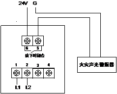 端子5、6平時(shí)為常開觸點(diǎn),手動(dòng)報(bào)警按鈕按下時(shí)閉合,用于控制現(xiàn)場火災(zāi)聲光警報(bào)器(非編址型),需另接DC24V電源。嚴(yán)禁使用此觸點(diǎn)控制大功率設(shè)備和強(qiáng)電設(shè)備。