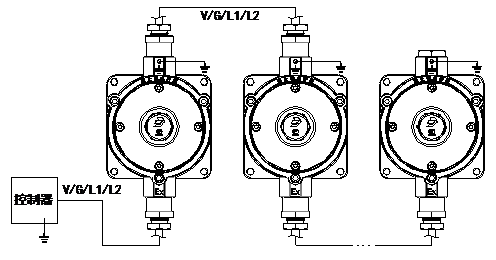 端子L1、L2分別接信號(hào)線L1、L2,無(wú)極性;端子V、G分別接電源線DC24V、GND,無(wú)極性。